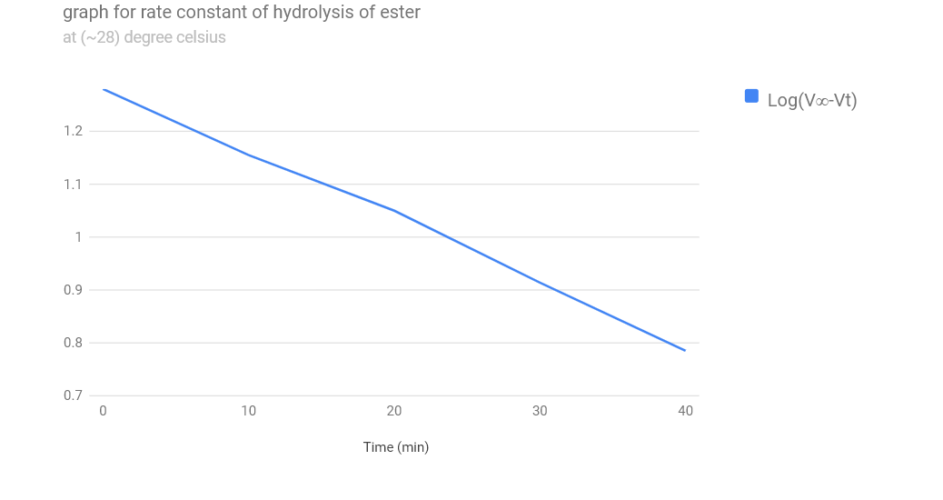 | Time (min) | Volume of solution | Titre value(ml) | (V∞-Vt) | Log((V∞ - Vt) | Rate of Constant(k) |